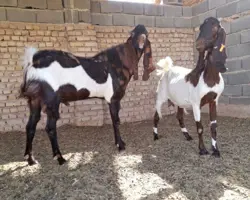 ۲راس بز ماده دوقلوزا که یکی از آنها آبستن است. وزن بالا و یک بزغاله هرکدام ۳میلیون تومان