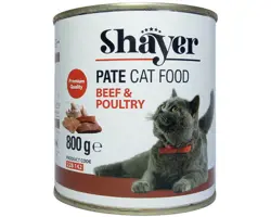 کنسرو غذای گربه شایر با طعم گوشت گاو و پرندگان shayer beef & poultry وزن ۸۰۰ گرم