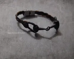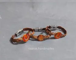 دستبند چرمی با موی طبیعی اسب دوخته شده و قفل استیل رنگ ثابت دارد.قابل سفارش در رنگ و اندازه ی دلخواه شما