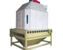 خنک کردن گرانول های تولید شده که دمای بسیار بالایی دارند با خنک کن عمودی ، از ترک خوردن و شکستن پلت در مواجه با هوای سرد جلوگیری می کند از ترکیب هوا در قسمت ورودی جلوگیری می کند پخش کننده های مخروطی مواد که قابل تنظیم هستند موجب پخش یکنواخت مواد می شوند. مخزن جدید هشت ضلعی موجب بهبود عملکرد خنک کنندگی می گردد زیرا هیچ فضای مرده ای بین مواد به وجود نمی آید تخلیه روان ، حرکت پایدار ، باقی نگذاشتن مواد داخل مخزن ، نیازی به حرکت رفت و برگشت در زمان مواد جدید ایجاد نمی کند . دمای پلت خروجی بعد از خنک کن حداکثر 3 تا 5 درجه سانتی گراد از محیط بیشتر خواهد بود.