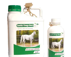 ترکیبی فرموله شده با استفاده از روغن دانه های کتان و سویا که برای تمام کلاسه های اسب به ویژه اسب ورزشی مناسب است. ویژگی های متمایز امگا میکس: غنی از مقادیر مناسب انواع اسیدهای چرب امگا (امگا3، امگا6، امگا9) تامین کننده انرژی در اسب های دارای فعالیت بدنی بالا و کمک به افزایش وزن بدن تامین کننده اسیدهای چرب ضروری اسب منبع انرژی سرد برای اسب های خونگرم تهیه شده با روش پرس سرد مناسب برای تمام کلاسه اسب بویژه اسب زیبایی براق کننده پوست و حفط کیفیت پوست توصیه مصرف: اسب بالغ: 60 سی سی روزانه کره اسب: 40 سی سی روزانه