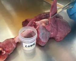 بررسی حالات غیر طبیعی لاشه: آبسه ها – تورم مفاصل – فتق نافی – ورم پستان – تورم فک – نفخ شکمبه – آبستنی سنگین – trp - پروالپس رکتوم یا رحم – ترشحات چرکی از چشم، بینی و دهان – سیالن بزاق – گانگرن اندامها یا پستان – بوی استن و غیره به منظور تشخیص دقیق بیماری ها و سلامت لاشه